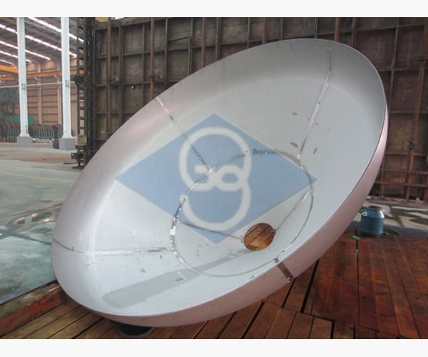 錐形封頭廠家分析錐形封頭錐體的主體部分在內(nèi)壓作用下,較大薄膜應(yīng)力發(fā)生在大端。錐體和圓筒部分連接處,由于幾何不連續(xù)性,曲率半徑突變,因此該處會產(chǎn)生較大的橫向推力,引起較大邊緣應(yīng)力,容易發(fā)生彎曲,故需加強。對大端,軸向彎曲應(yīng)力為主要控制因素,且屬二次應(yīng)力,所以應(yīng)力強度控制在內(nèi);對小端,由于小端與圓筒連接處的應(yīng)力狀況主要為平均周向拉應(yīng)力和平均徑向壓應(yīng)力,屬局部薄膜應(yīng)力,所以應(yīng)力強度可以控制在內(nèi),但由于此處局部薄膜應(yīng)力有可能超越邊緣效應(yīng)的分布范圍,為安全起見,取應(yīng)力強度控制在以內(nèi)。對大端,任何情況下加強段的厚度不得小于相連接的錐殼厚度,加強段長度應(yīng)不小于,圓筒加強段長度應(yīng)不小于。對小端,任何情況下加強段的厚度不得小于相連接的錐殼厚度,錐殼加強段長度應(yīng)不小于,圓筒加強段長度應(yīng)不小于。